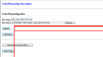 supplementary explanationMultiple sets of colorimetric data registered via Web is displayed on the Colored Data File Select screen.