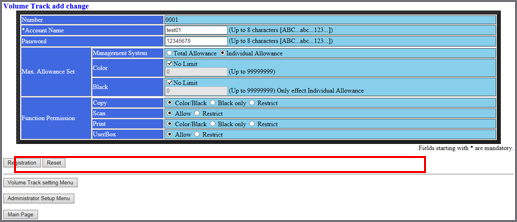 supplementary explanationChange Account Name, Password, Max. Allowance Set, and Function Permission. You can change these data in the same way as you register them. For details, refer to Registering a New Account Track Data on Browser.