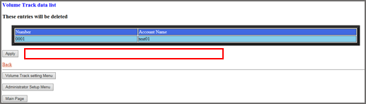 supplementary explanationClick on the check box(es) on the Volume Track data list screen to select the account track data to be deleted. Click on the Delete radio button.