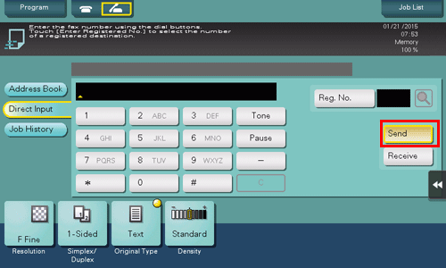 When you set [Check Destination] to ON when registering a fax destination, the Check Dest. and Send function is performed before a fax is sent to a registered destination. For details on how to register a fax destination, refer to Here.