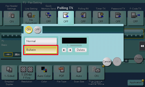 Tap [Application] - [Fax Setting] - [Polling TX], and tap [ON].