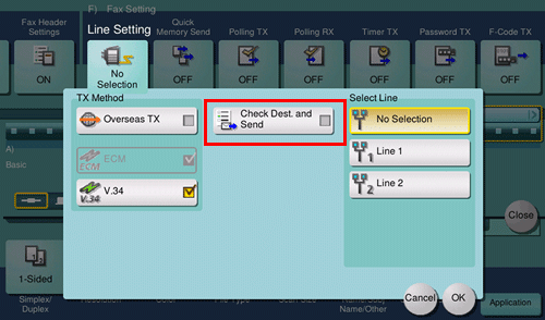 Set [Check Dest. and Send] to ON, and tap [OK].