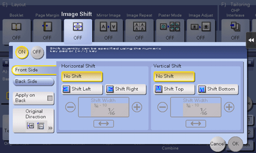 • [Shift Left]/[Shift Right]: Shifts the image to the left or right. Select the shift direction, and specify the shift amount in [Shift Width].