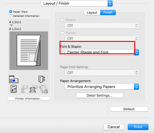 In [Print Type:] in [Layout / Finish], select [2-Sided]. [2-Sided] is specified by default.