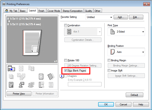 • [Skip Blank Pages] is available only when the printer driver for Windows is used.