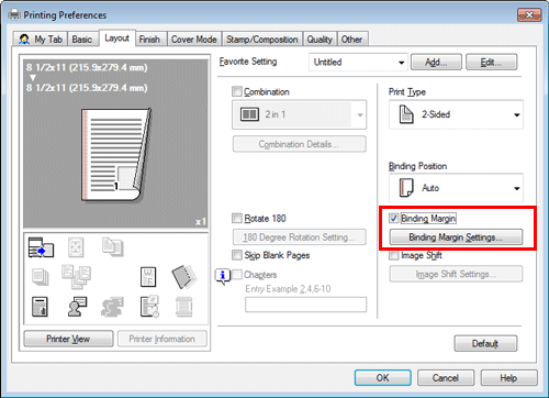 In [Binding Position] in the [Layout] tab, specify the margin position.