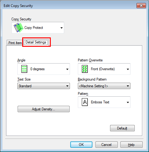 [Adjust Density...] | Adjust the density of the copy security pattern. |