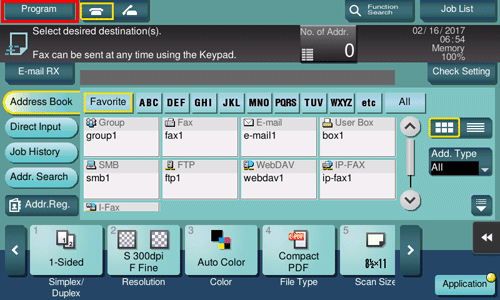 You can also register Fax/Scan programs using Web Connection. For details, refer to Here.