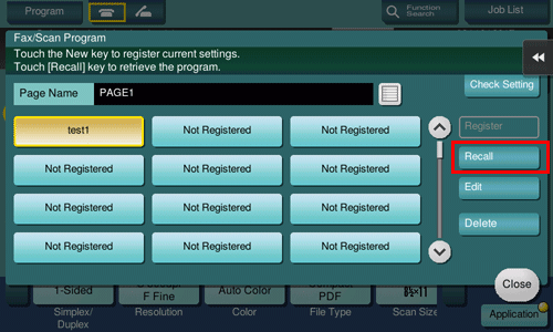 When you register a Fax/Scan program, you can recall the combination of option settings from the main screen with a single key action. You can also include a destination in program registration.