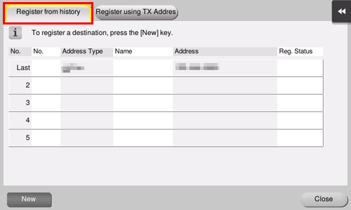 Tap [Register from history].