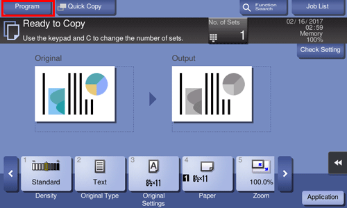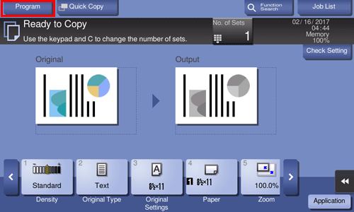 When you register a copy program, you can recall the combination of various copy settings from the main screen with simple action.