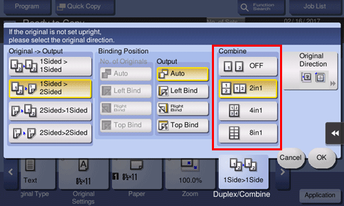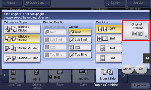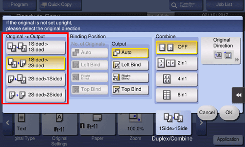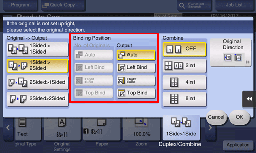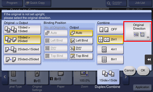 • For [2Sided > 1Sided], select the binding position of [No. of Originals].