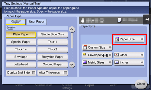 Tap [Change Tray Setting] - [Specify Paper Size].