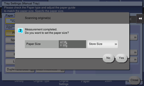 Measure the size of custom paper using the Original Glass. If you register the measured size in the memory, you can reduce the number of steps required to enter the size from the next time.