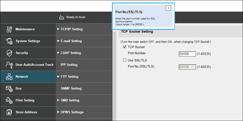 In the [Network] menu that appears after you log in to the administrator mode of Web Connection, you can use the popup help.