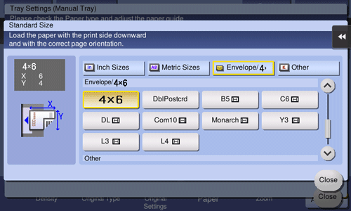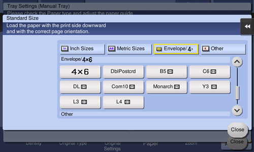 Various sizes of envelopes are available. Specify the correct paper size for the envelopes you have loaded. When the envelope size is specified, [Paper Type] is automatically set to [Envelope].