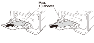 Load envelopes with the flap side facing down and the short side facing toward the paper feed port.