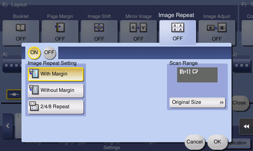 [ON]/[OFF] | Select [ON] to specify Image Repeat. |