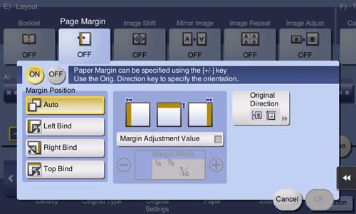 [ON]/[OFF] | Select [ON] to set a page margin. |