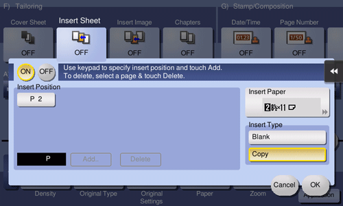 [Insert Type] | Select whether or not to copy on the insertion paper. |
