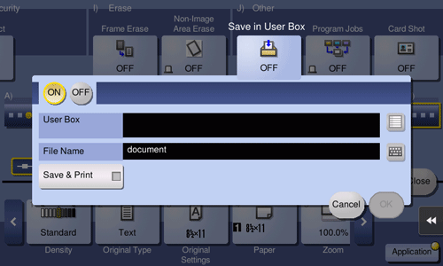 Save original images in the hard disk (user box) of this machine. You can also save an original in a user box and print at the same time.