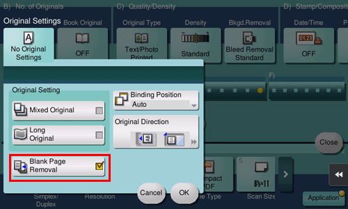 Select this check box when scanning an original containing blank pages. Any blank pages that are detected are not counted as original pages.