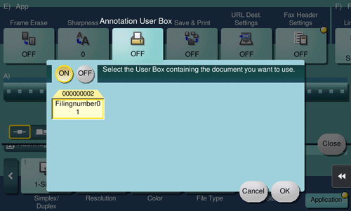 Annotation User Box is a box in which the function to add filing numbers to the saved original data for each job or page.