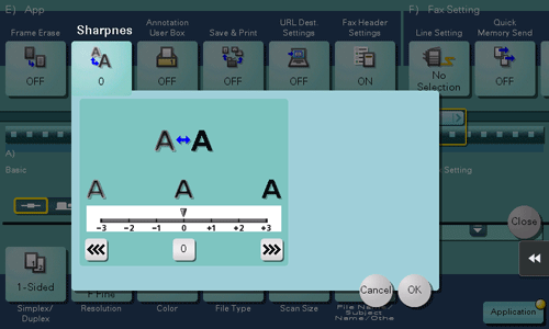 Specifying [Sharpness] sharpen the edges of images such as text in the table and graphics to improve legibility. This function also smoothens the rough contours of an image or sharpens blurred images.
