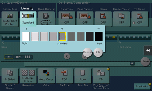 Adjust the density (Dark or Light) to scan the original.