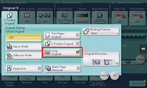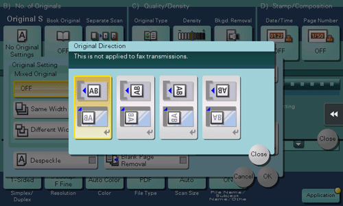 Configuring Scan or Original Settings for Scan Transmission