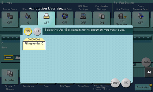 Annotation User Box is a box in which the function to add filing numbers to the saved original data for each job or page.