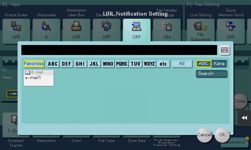 Change the file name of the scanned original. When sending by E-mail, you can specify the subject and text of the E-mail message and change the sender's E-mail address ("From" address).