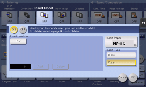 [Insert Type] | Select whether or not to copy on the insertion paper. |