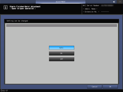 3. For upper gripper operation, select Auto, ON, or OFF.