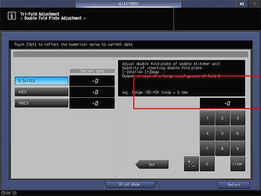 If any adjustment is required, use the touch panel keypad to enter the set value.