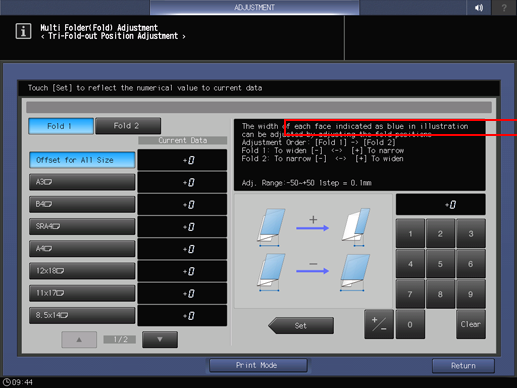 Select Fold 1, and then use the touch panel keypad to enter the set value.
