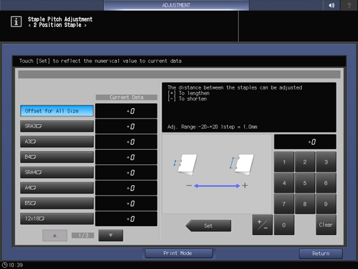 The screen returns to the Staple Pitch Adjustment Menu screen.