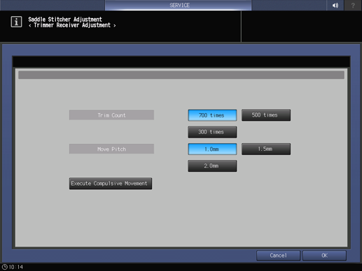 Press OK to return to the Saddle Stitcher Adjustment Menu screen.
