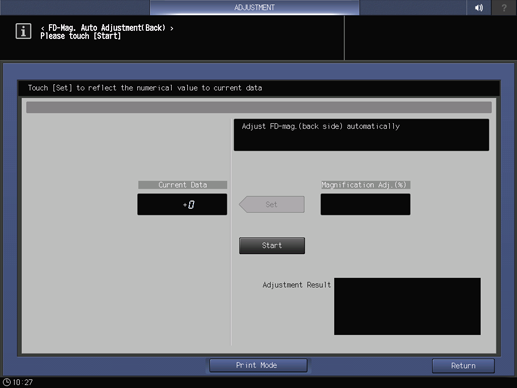 supplementary explanationIf it ends successfully, Adjustment Result indicates OK. If it ends abnormally, NG is displayed. Adjust it using the FD-Mag. Adjustment(Back).