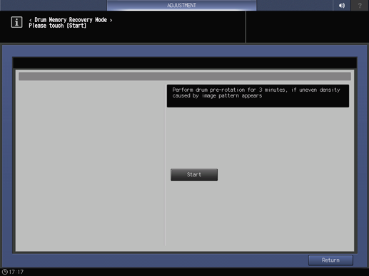 Perform drum pre-rotation for 3 minutes. Perform this adjustment when stripe-shaped uneven density is detected on a half-tone image.