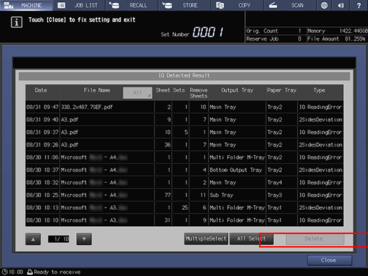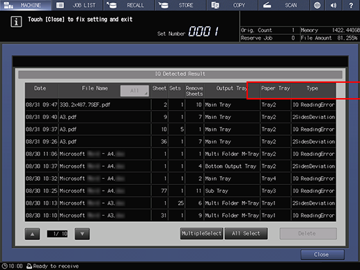 File Name | Displays the name of the file (job) in which an error was detected. toTo display all the file names, select the desired item, and press All. |