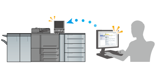 Using this application allows you to monitor a print job, copy job, or scan job, operate and edit jobs held on the machine, and edit pages. In addition, you can obtain device information such as machine status, consumable information, and tray information, and check the status of the machine through a computer.