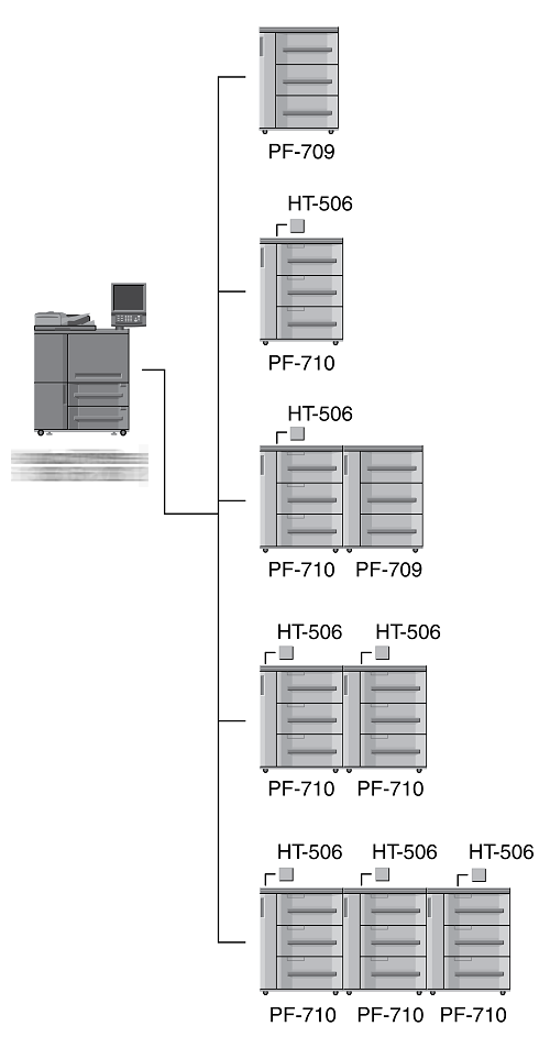 When three units of Paper Feed Unit PF-710 are mounted, Large Capacity Post Inserter PI-PFU cannot be mounted on the machine.