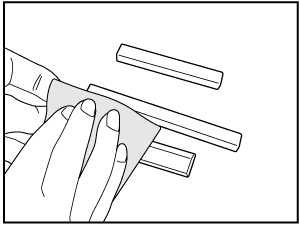 10. Wipe off paper powder attached to the paper powder removal brush for the resist roller/Up using a clean soft cloth.