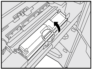 6. Pull the handle in the direction indicated by the arrow, and remove the paper powder removal brush for the resist roller/Lw.