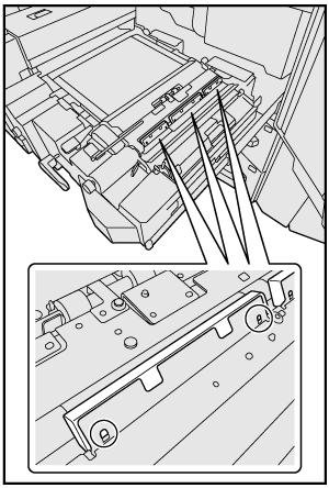 • supplementary explanationTo return three paper powder removal brushes for the resist roller/Up to their original positions, check that the two projections for each get into the hole of the sheet metal.