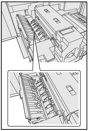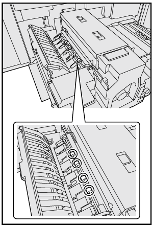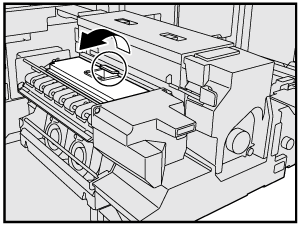 9. Clean the opposite roller of the fusing outlet roller using a soft cloth dampened with alcohol (cleaner).