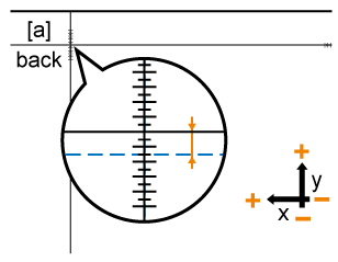 For example, when the black line on the back side is misaligned to the plus side by 1.5 mm from the blue dash line on the front side as shown in the figure, type "-1.5" for correction to move the black line on the back side to the minus side by 1.5 mm.