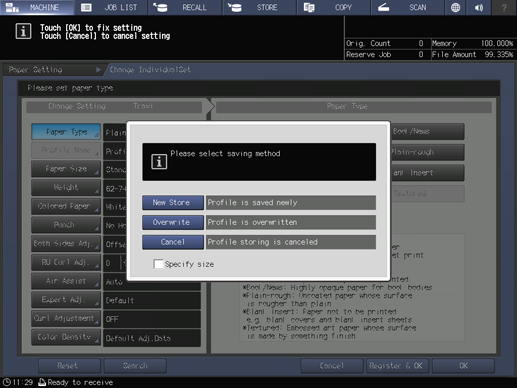 If an adjustment is made for paper of a new brand, weight, or size, its contents will be newly registered as a paper profile.