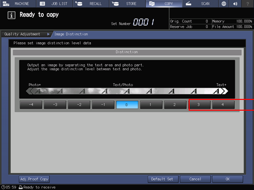 supplementary explanationPrepare an original for adjusting Image Distinction, and position it into the ADF or on the original glass.